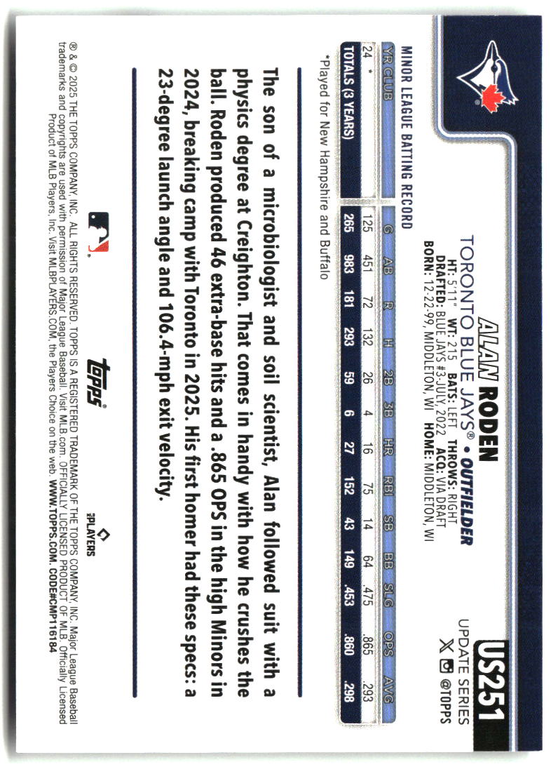Alan Roden 2025 Topps Update #US251