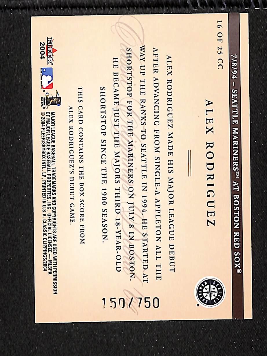 Alex Rodriguez 2004 Fleer Classic Clippings Inserts #16 CC #/750