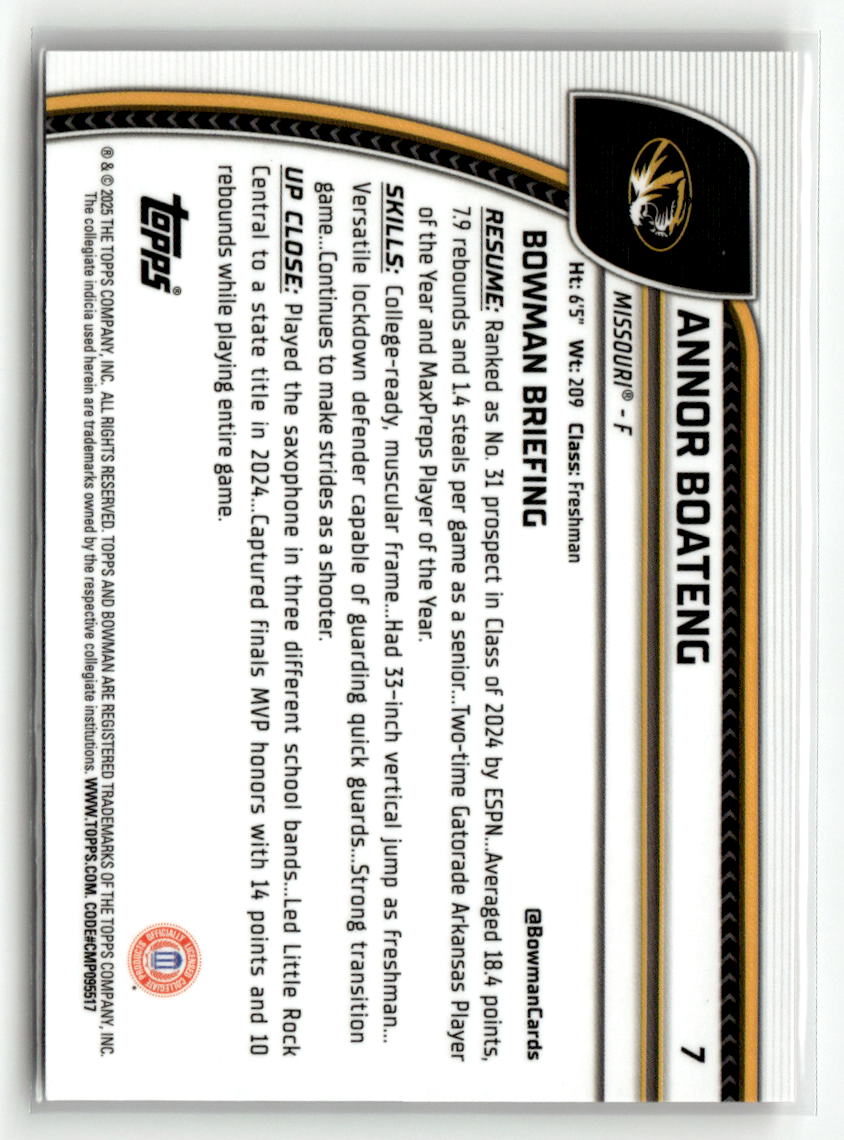 Annor Boateng 2025 Bowman U Chrome Red Refractor #7 /5