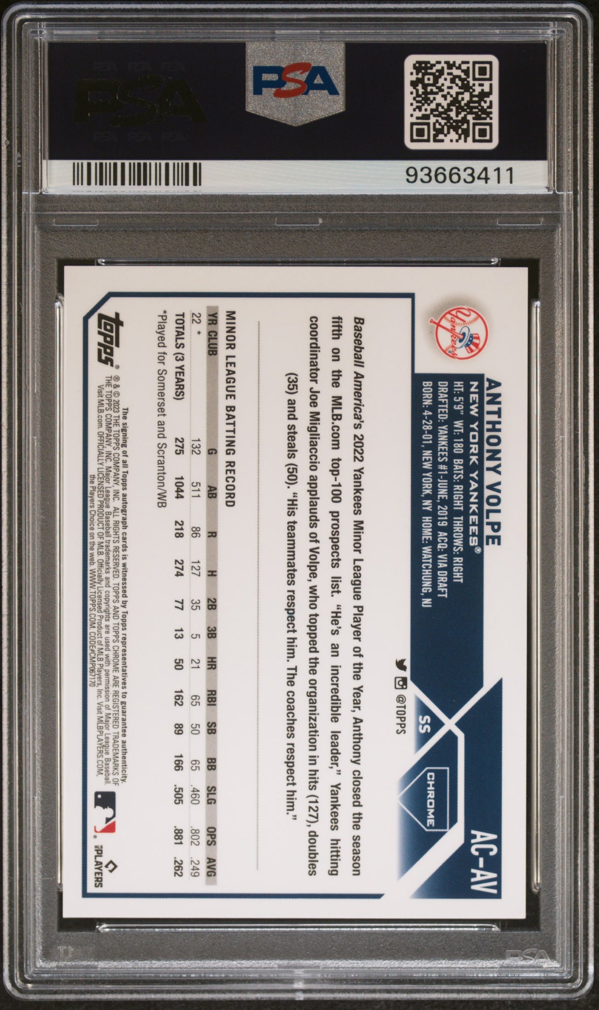 Anthony Volpe 2023 Topps Chrome Update Autograph #ACAV PSA 10