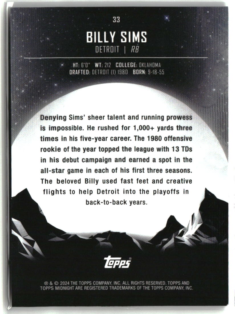 Billy Sims 2024 Topps Midnight Twilight #33 #/99