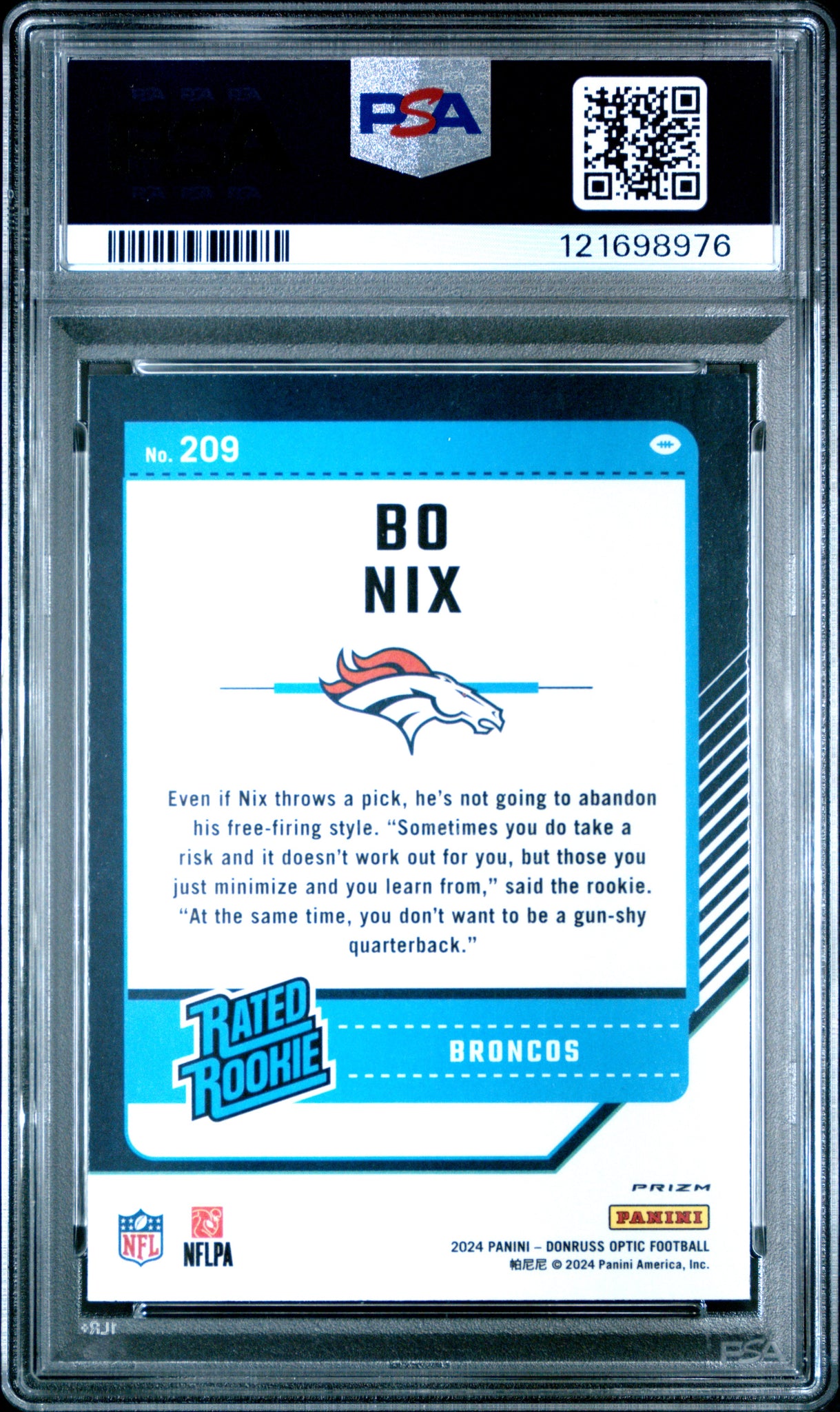 Bo Nix 2024 Donruss Optic Purple Shock #209 PSA 9