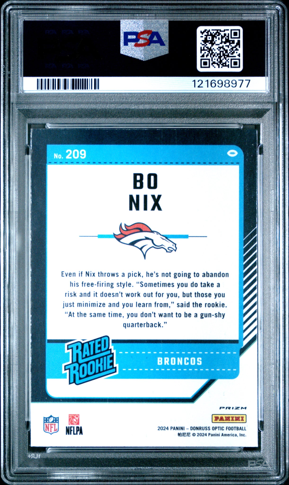 Bo Nix 2024 Panini Donruss Optic Blue Hyper #209 PSA 8