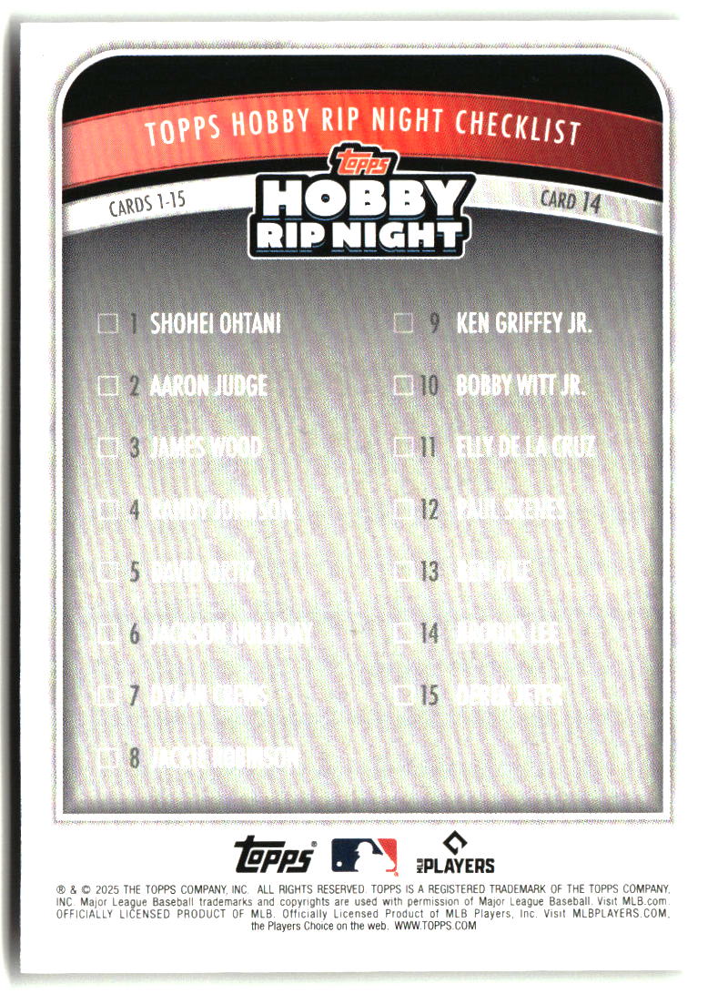 Brooks Lee 2025 Topps Hobby Rip Night #14