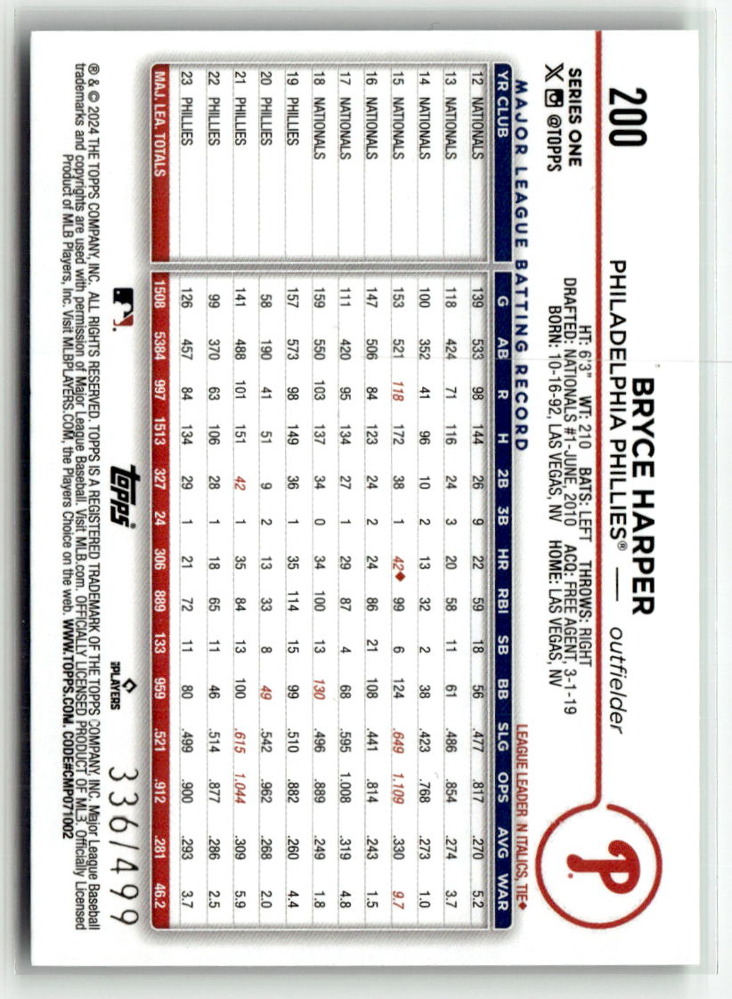 Bryce Harper 2024 Topps Series 1 Green Crackle Foilboard #200 /499