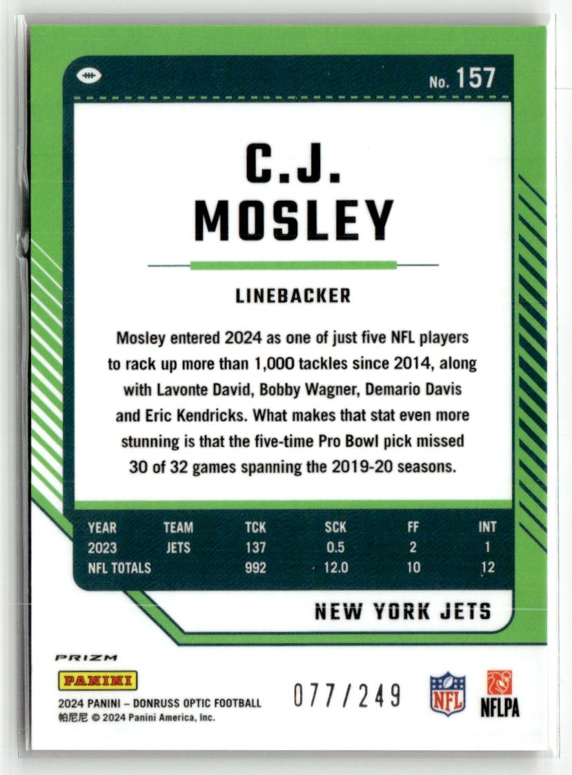 C.J. Mosley 2024 Donruss Optic Orange #157 #/249