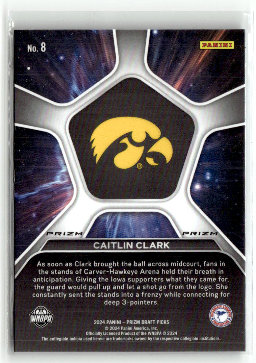Caitlin Clark 2024 Panini Prizm Draft Picks Deep Space Silver Prizm #8 RC