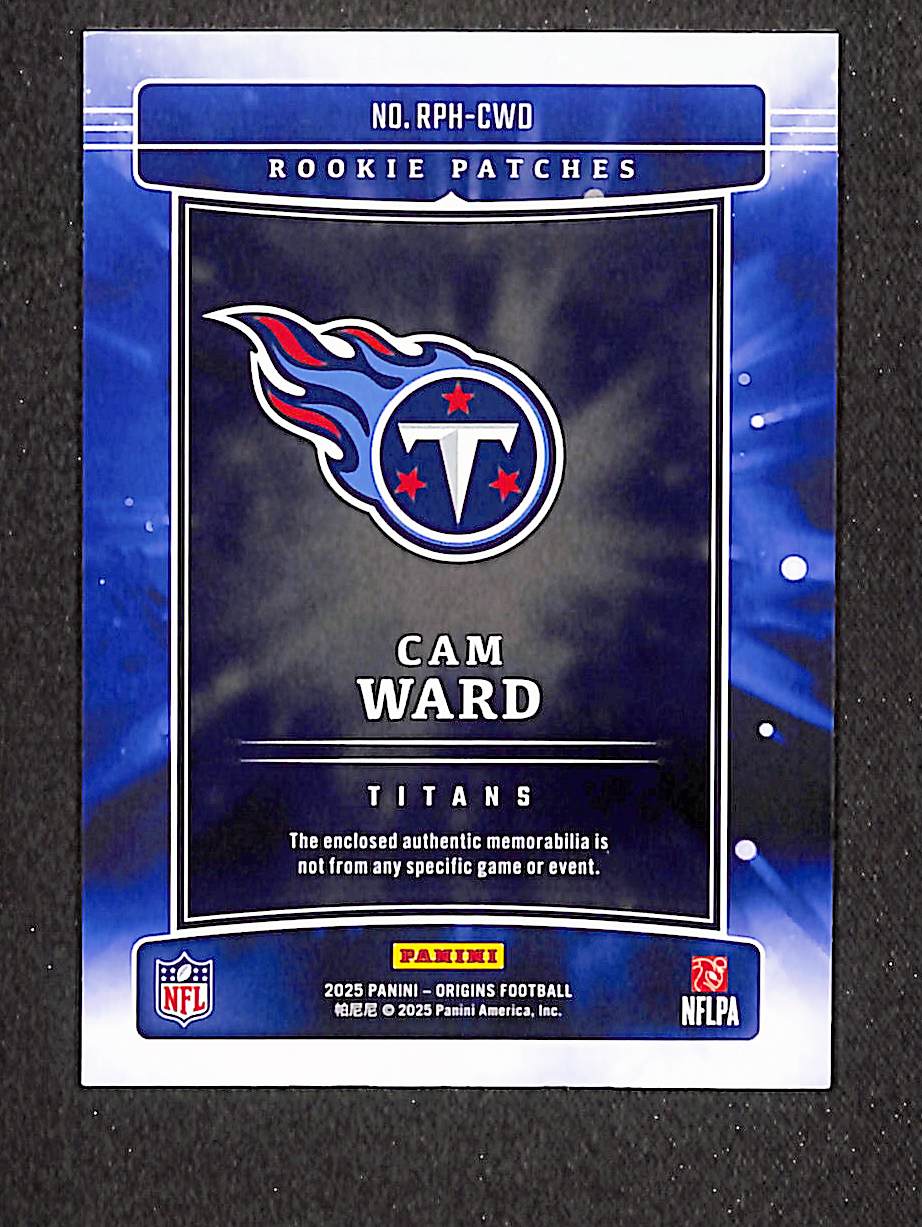 Cam Ward 2025 Panini Origins Rookie Patches Turquoise #RPH-CWD 20/25