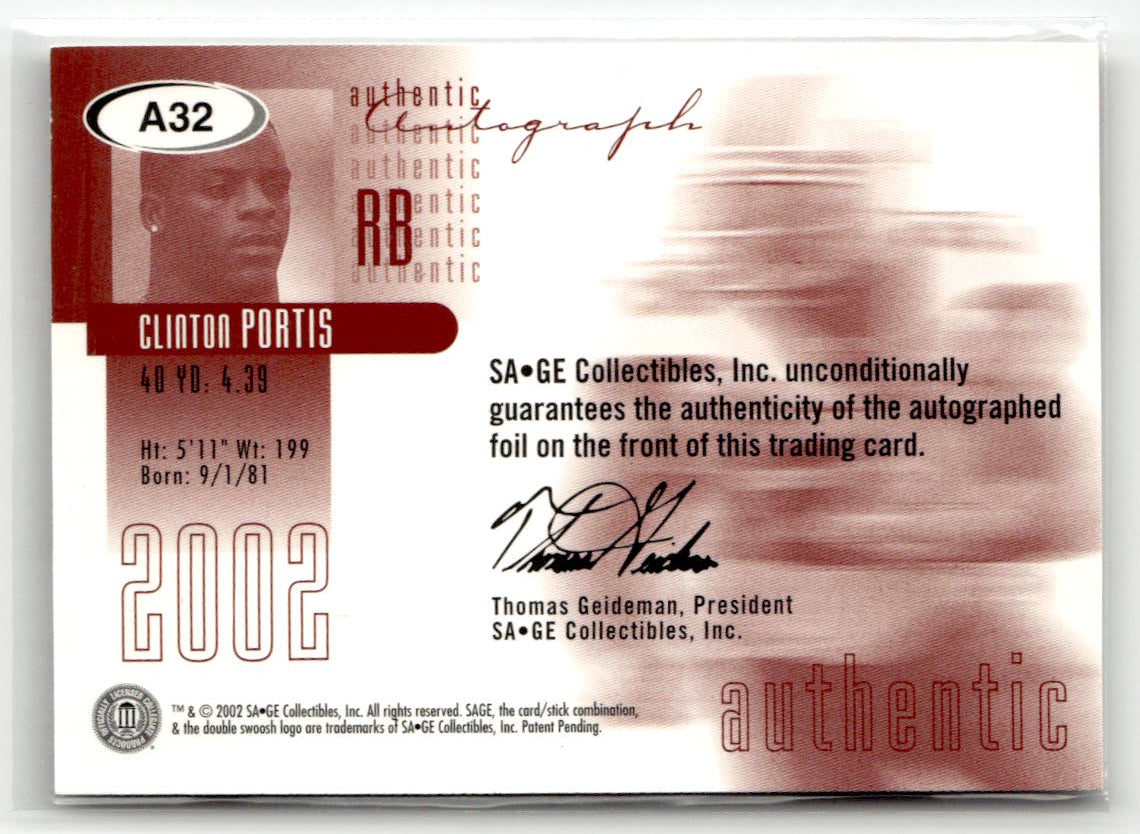 Clinton Portis 2002 SAGE Autographs #A32 /70