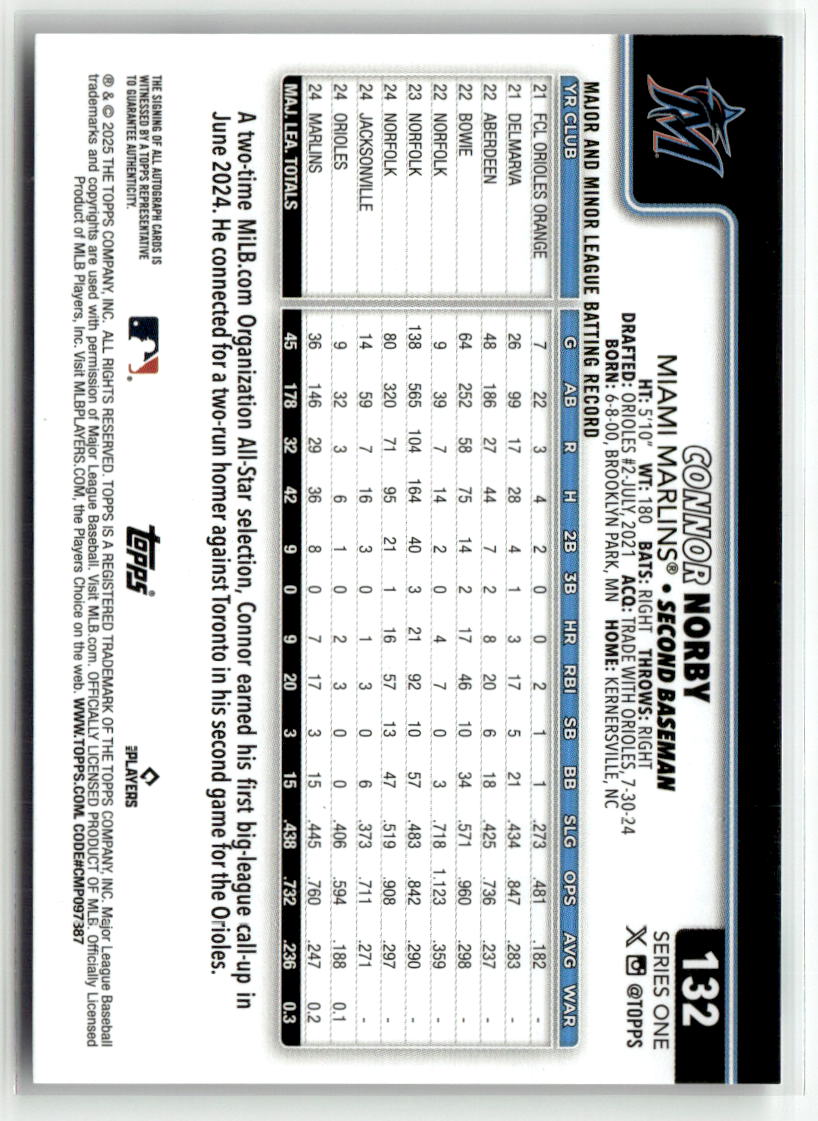 Connor Norby 2025 Topps Series 1 Flagship Real One Autographs #132