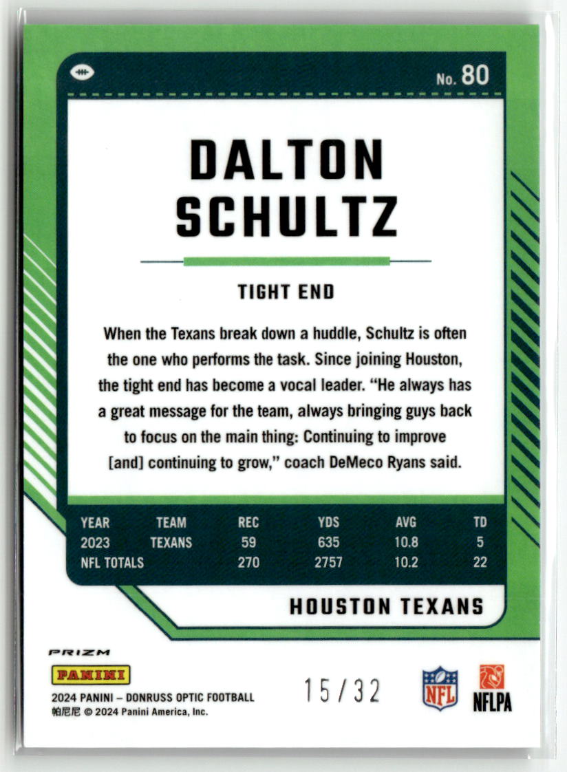 • Load image into Gallery viewer, Dalton Schultz 2024 Panini Donruss Optic Football Team Logo #80 /32