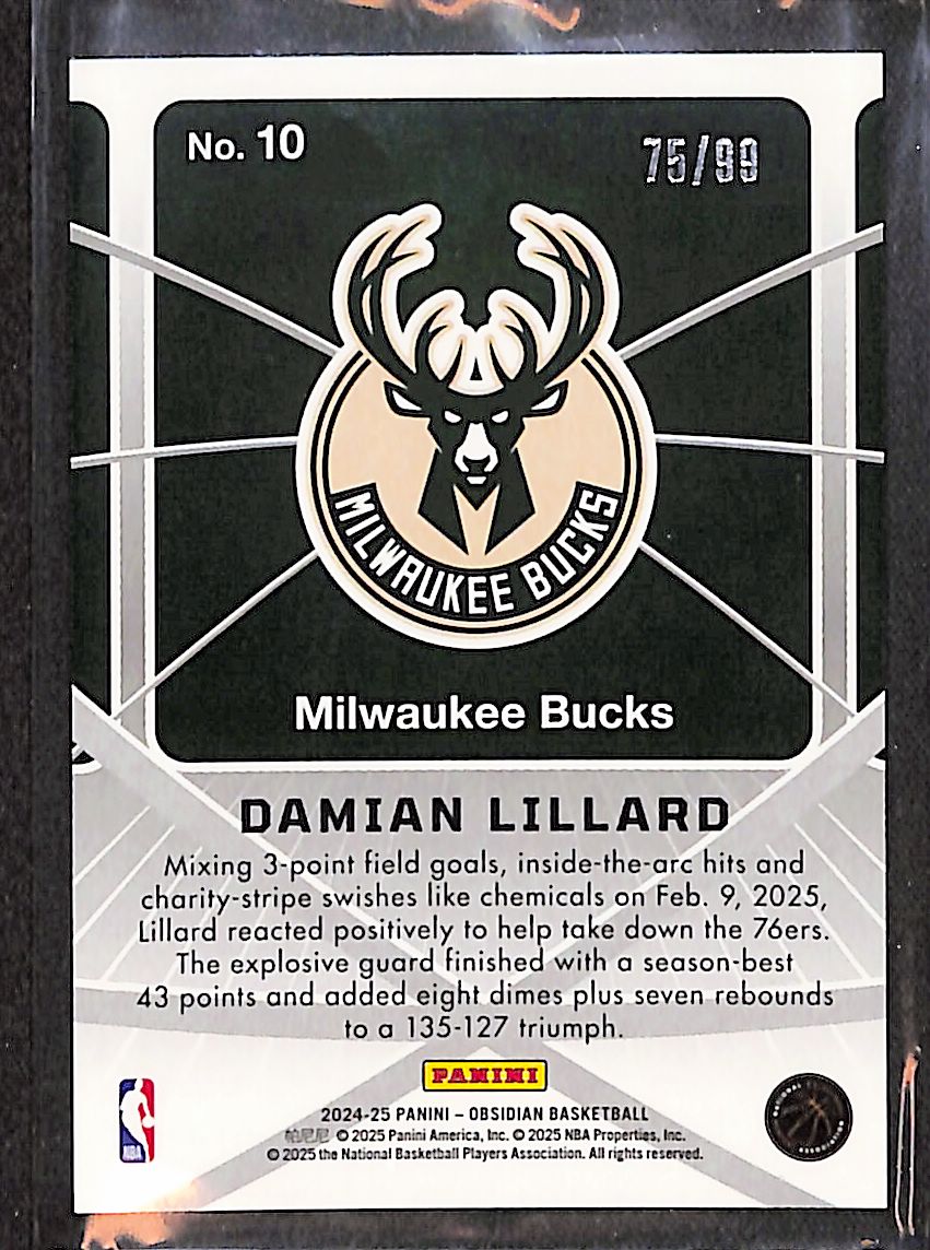 Damian Lillard 2024 Obsidian Atomic Initials Electric Etch Orange Flood #10 /99