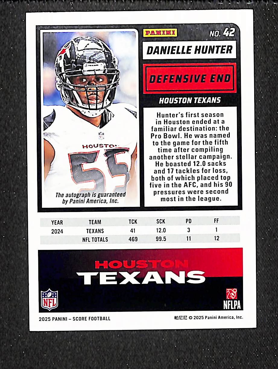 Danielle Hunter 2025 Panini Score Base Signatures Red Zone #42 01/20