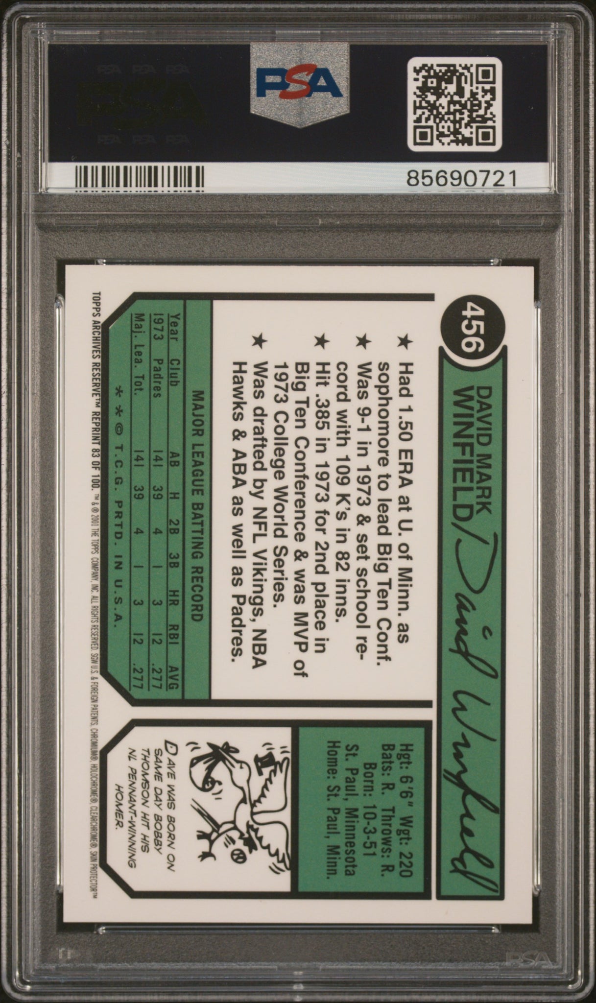 Dave Winfield 2001 Topps Archives Reserve #83 PSA 9