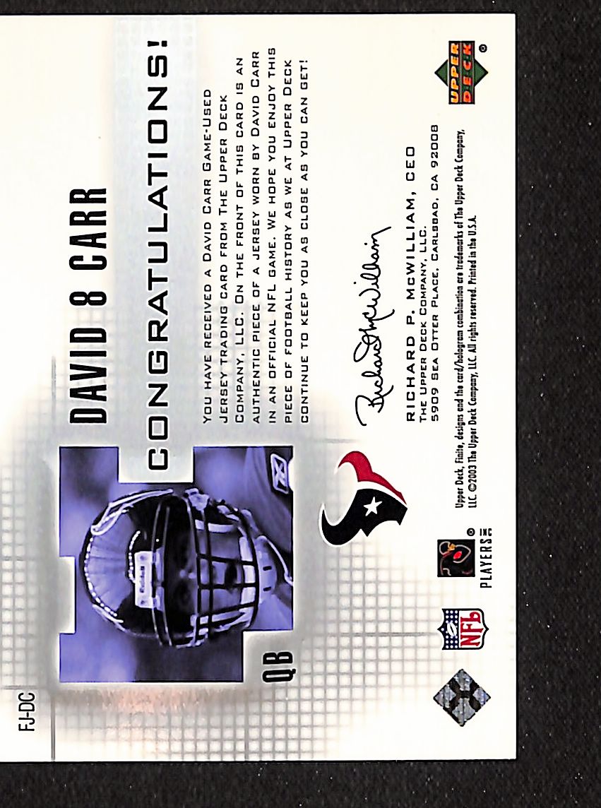 David Carr 2003 Upper Deck Finite Jerseys #FJ-DC