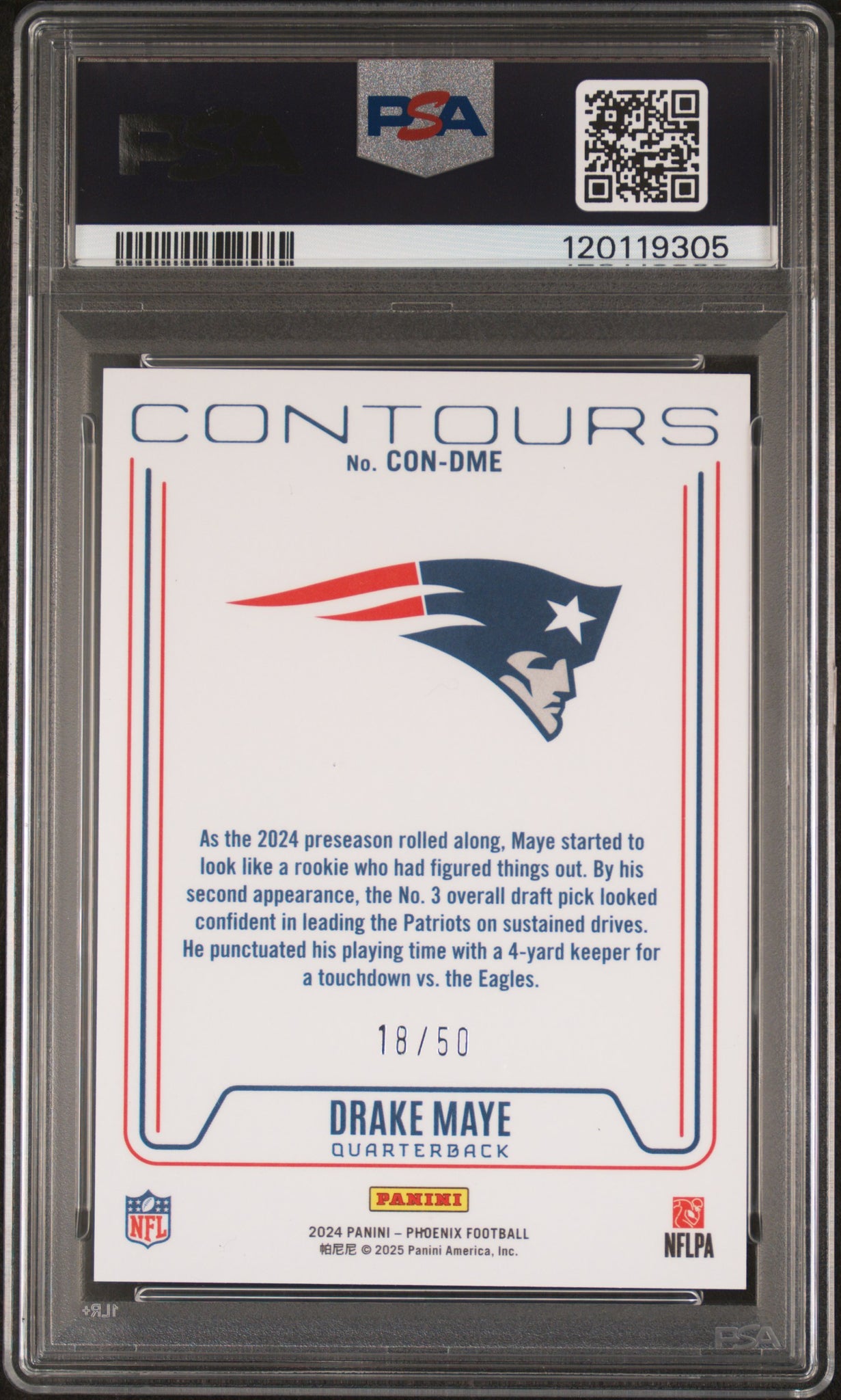 Drake Maye 2024 Panini Phoenix Contours Blue #CON-DME #/50 PSA 10