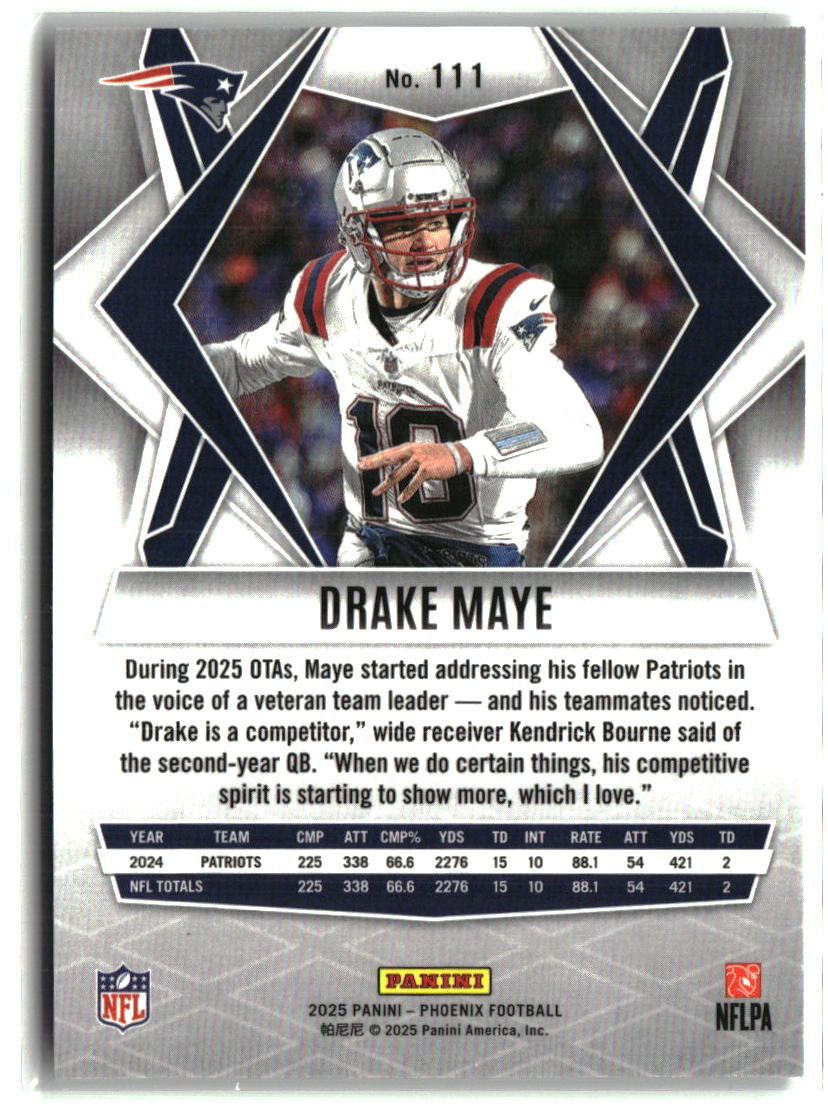 Drake Maye 2025 Panini Phoenix Silver Winter Prizm #111