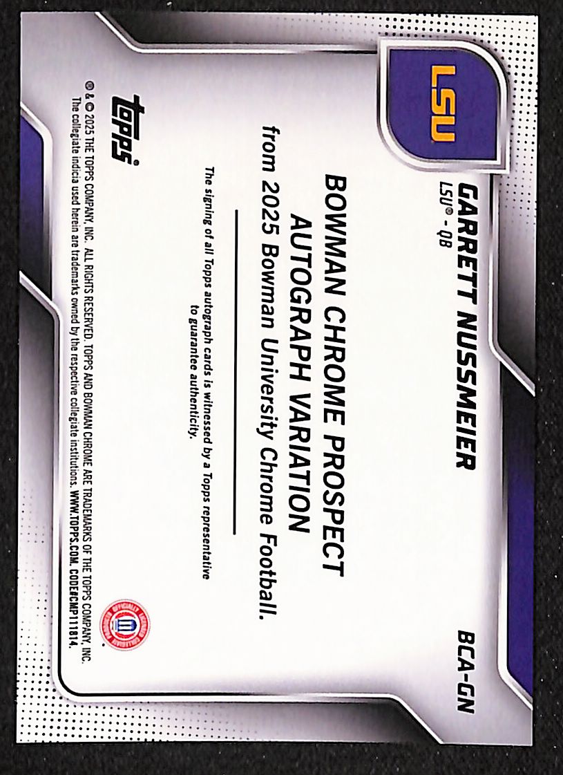 Garrett Nussmeier 2025 Bowman University Chrome Football Auto Blue #BCA-GN /150