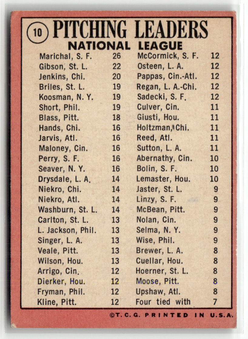 Gibson Marichal Jenkins 1969 Topps National League 1968 Pitching Leaders #10