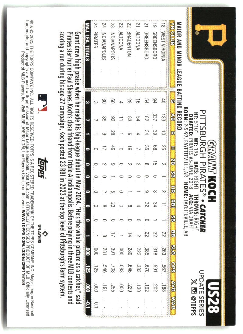 Grant Koch 2025 Topps Update #US28