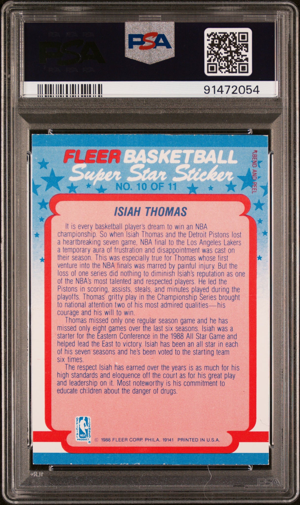 Isiah Thomas 1988 Fleer Sticker #10 PSA 6