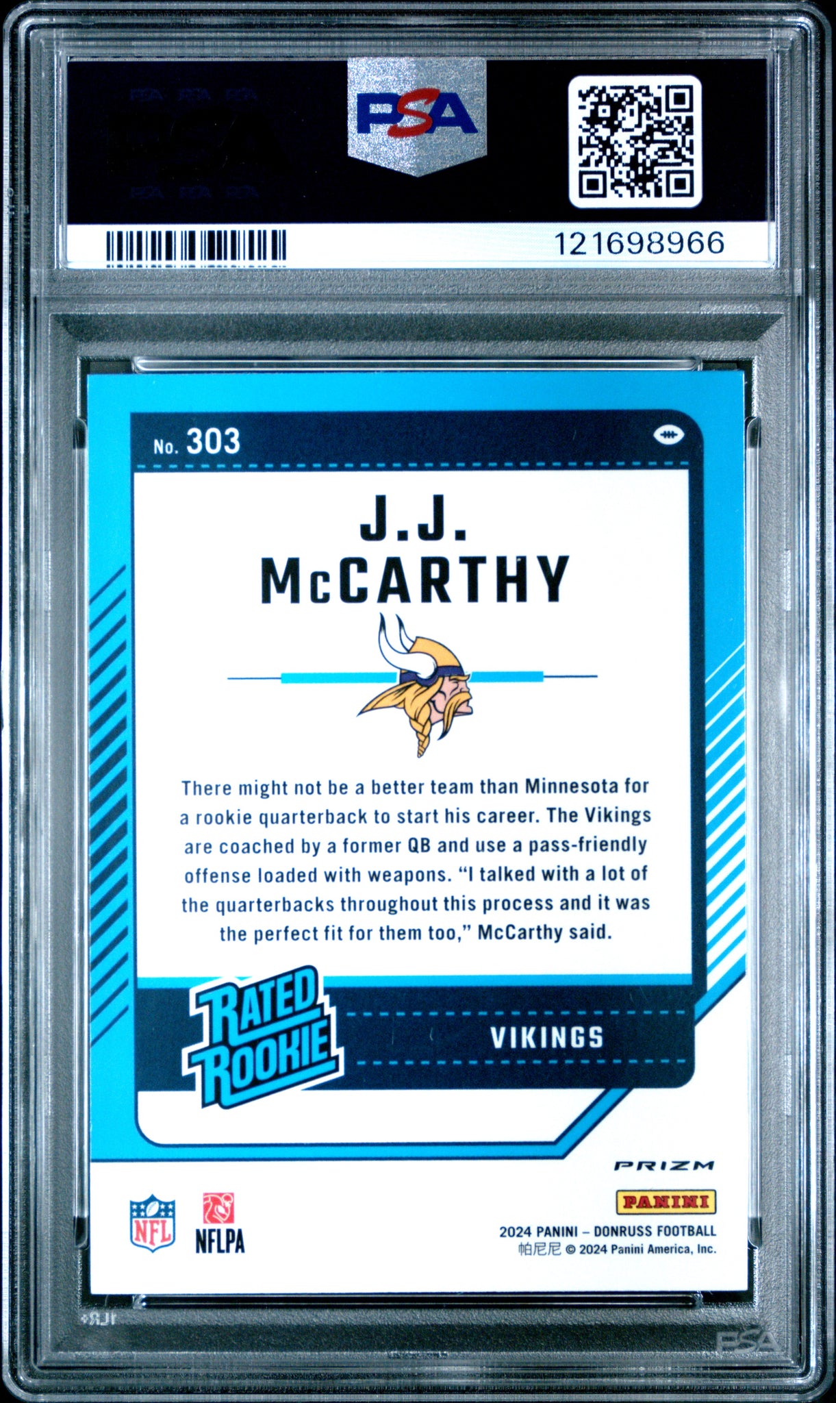 J.J. McCarthy 2024 Donruss Optic Rated Rookies Preview Pink #303 PSA 10