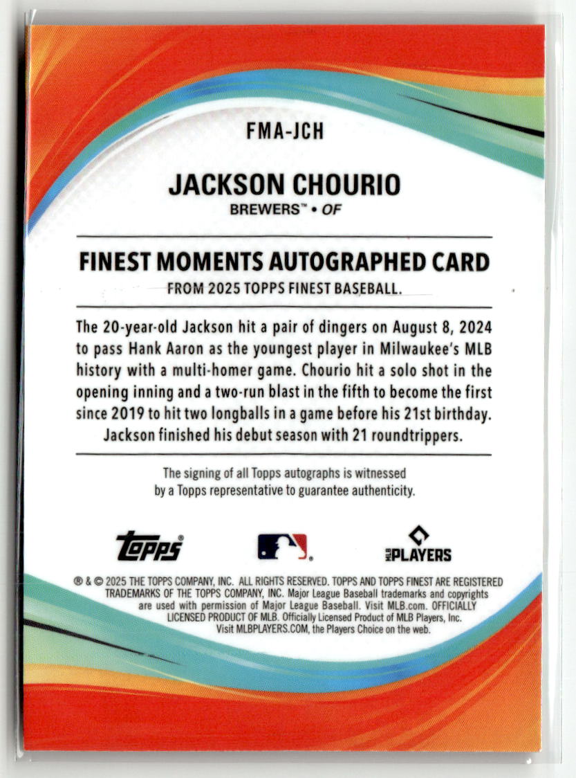 Jackson Chourio 2025 Topps Finest Moments Autographs Gold #FMA-JCH /50