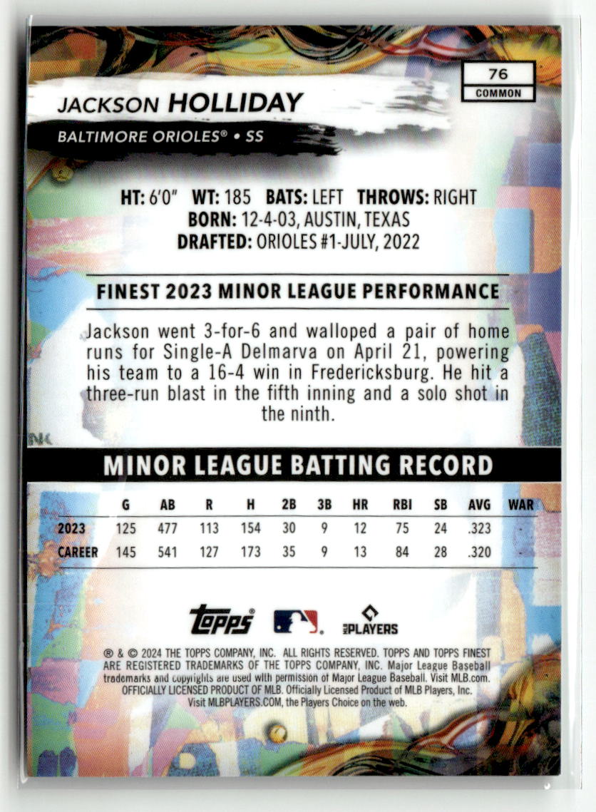 Jackson Holliday 2024 Topps Finest Purple Checkerboard Refractors #76 /150
