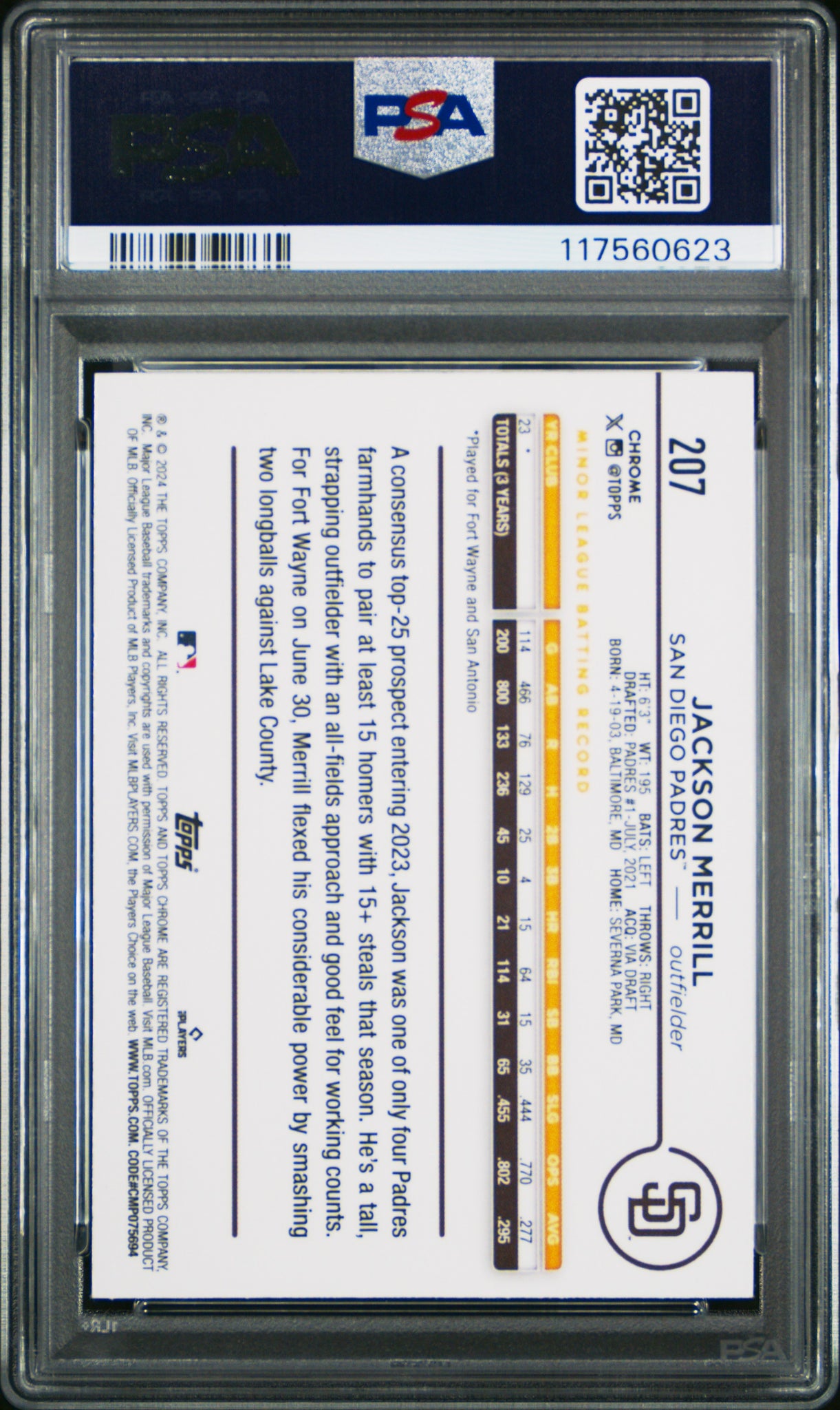 Jackson Merrill 2024 Topps Chrome Pink Refractors #207 PSA 10