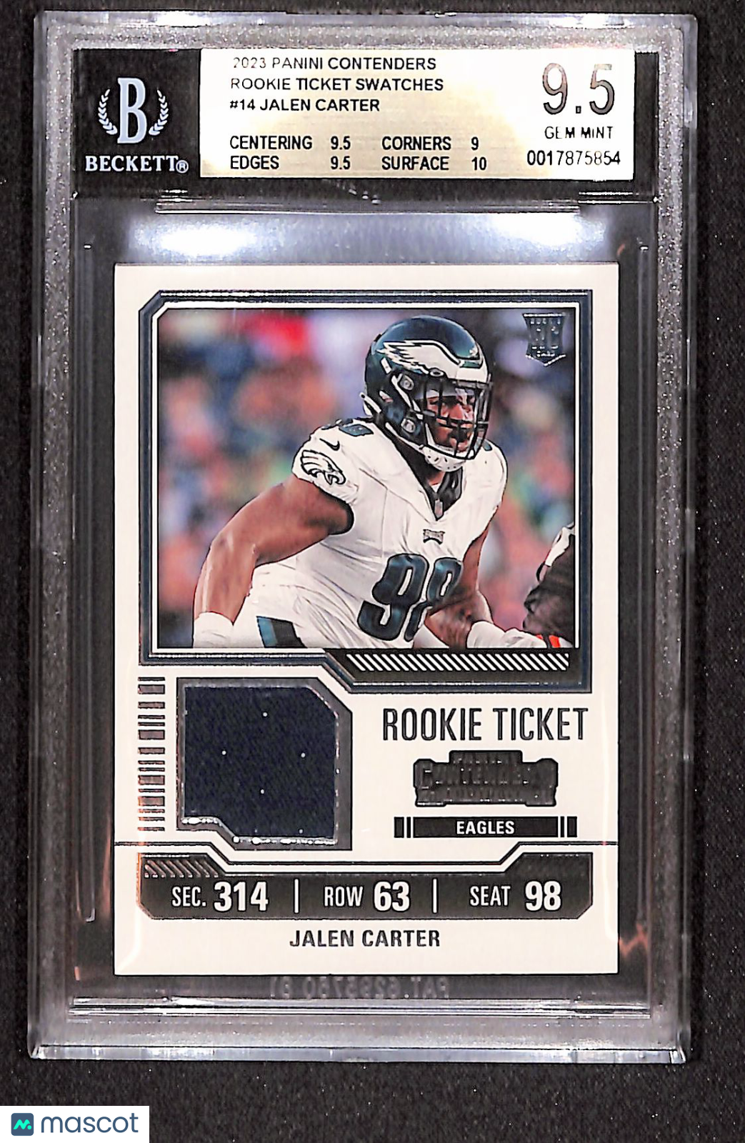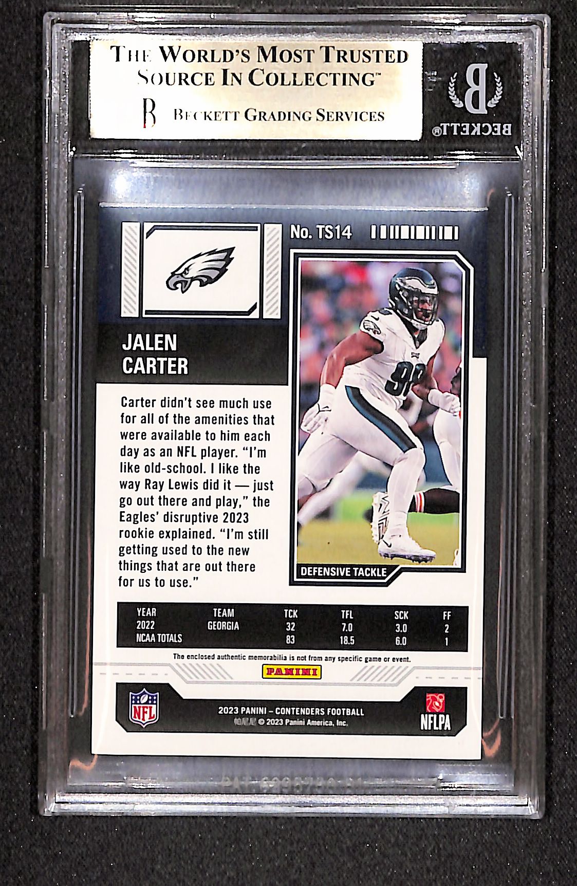 Jalen Carter 2023 Panini Contenders Rookie Ticket Swatches #14 BGS 9.5