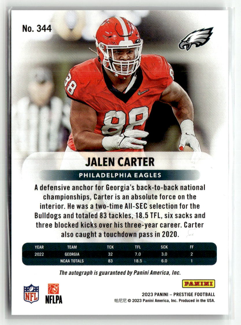 Jalen Carter 2023 Panini Prestige Football Xtra Points Autograph #344