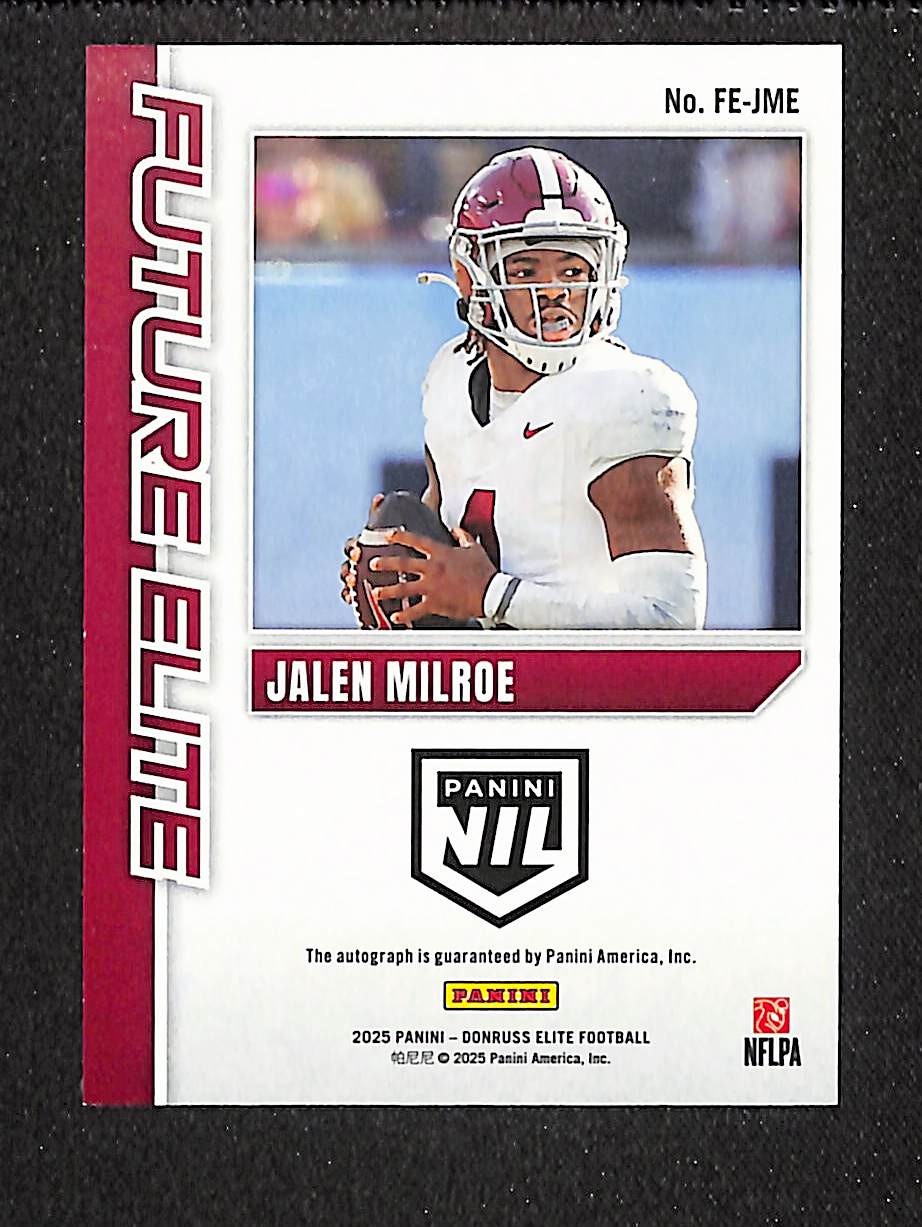 Jalen Milroe 2025 Panini Donruss Elite Future Elite Purple #FE-JME /99