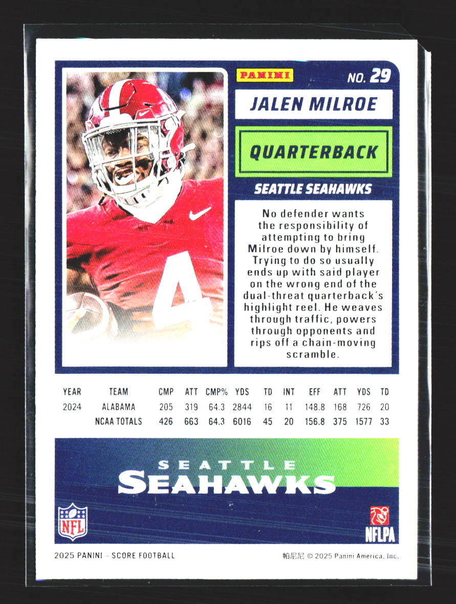 • Load image into Gallery viewer, Jalen Milroe 2025 Panini Score Rookie Lava #29 /799 RC