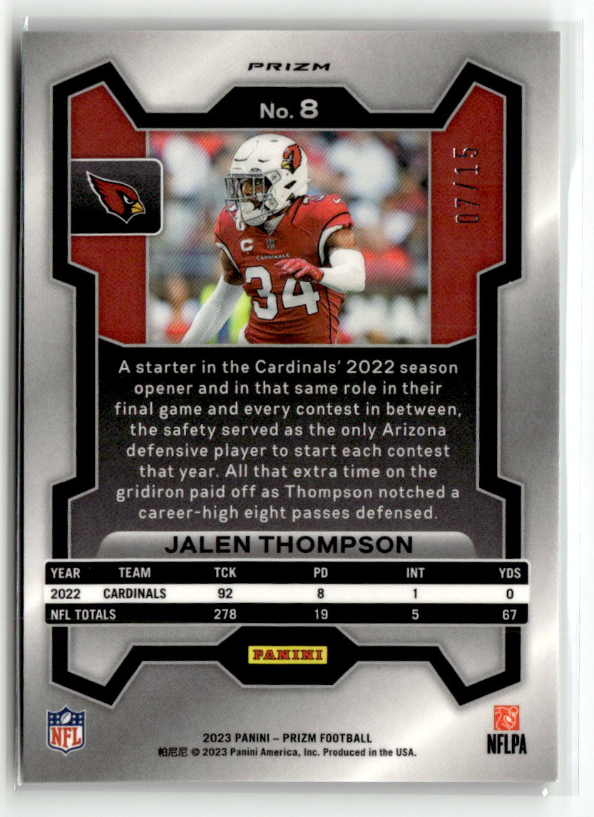 Jalen Thompson 2023 Panini Prizm Football Forest Camo #8 /15