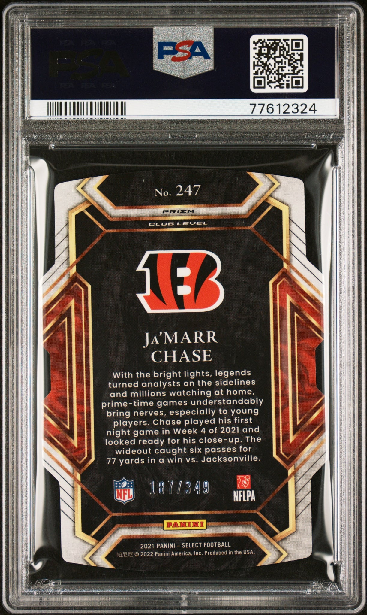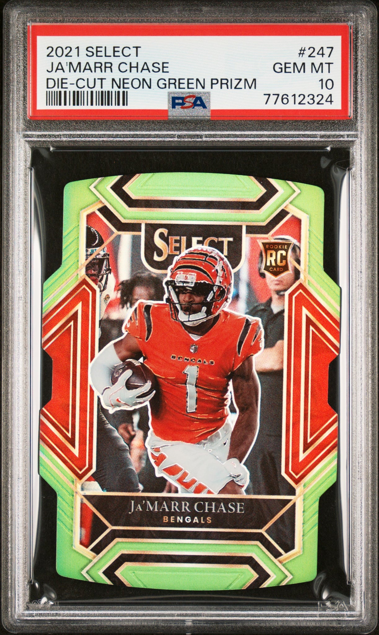 Ja'Marr Chase 2021 Panini Select Neon Green Prizm Die Cut #247 #/349 PSA 10