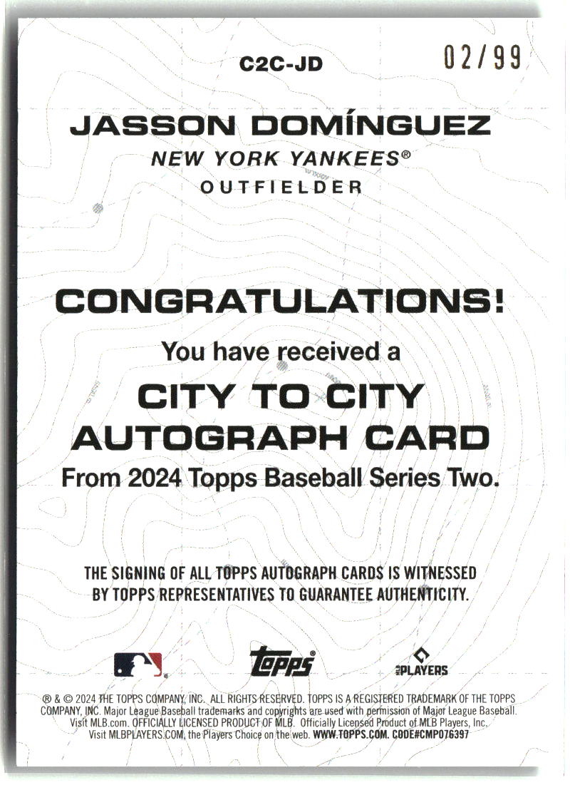 Jasson Domínguez 2024 Topps City to City Autographs #C2C-JD #/99