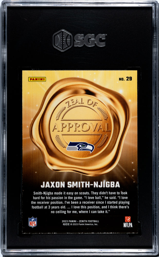 Jaxon Smith-Njigba 2023 Panini Zenith Zeal Of Approval #29 SGC 10