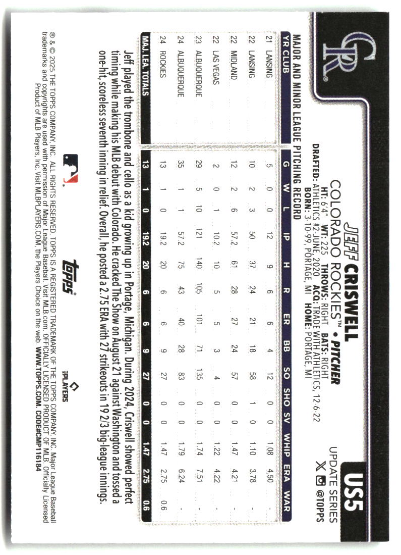 Jeff Criswell 2025 Topps Update #US5