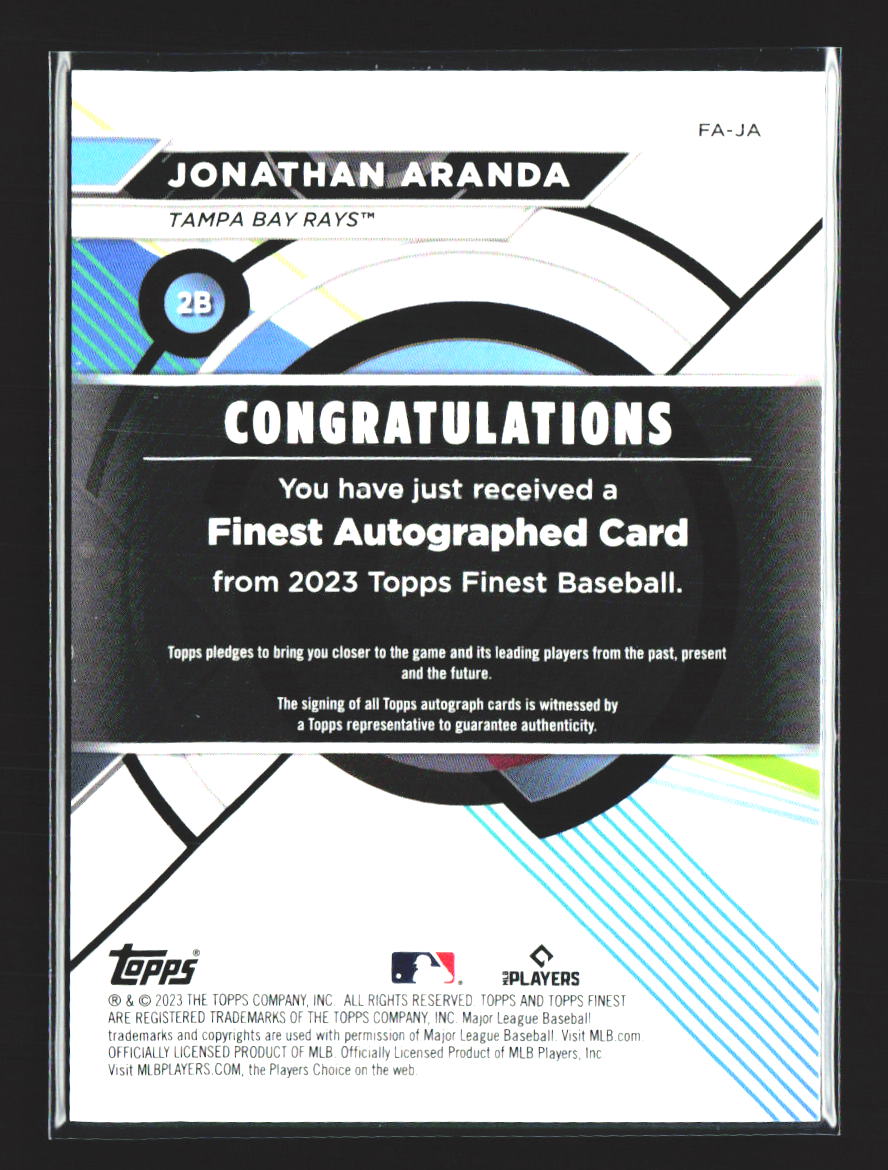 Jonathan Aranda 2023 Finest Finest Autographs Green Refractor #FA-JA #/99