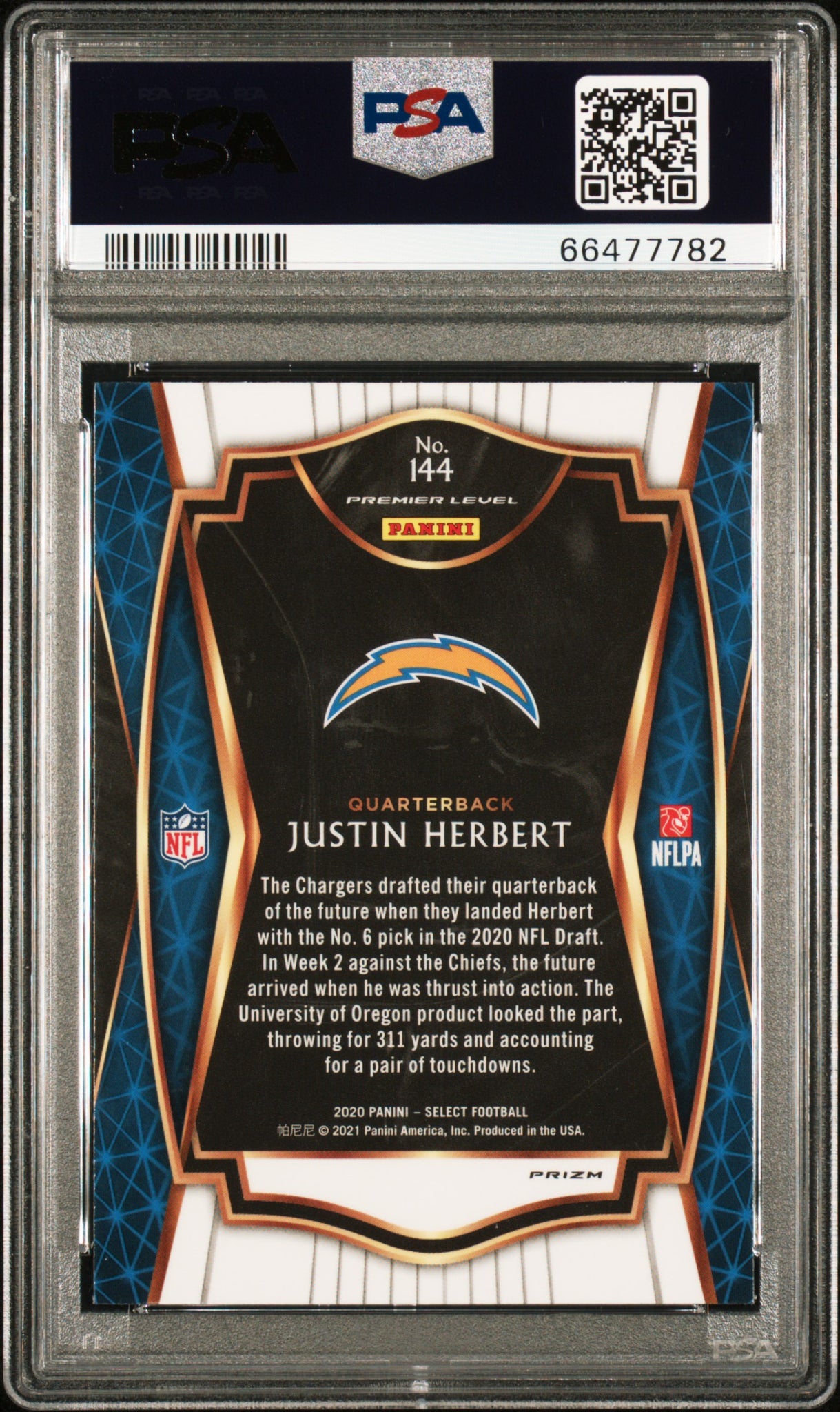 • Load image into Gallery viewer, Justin Herbert 2020 Panini Select Silver Prizm #144 PSA 10