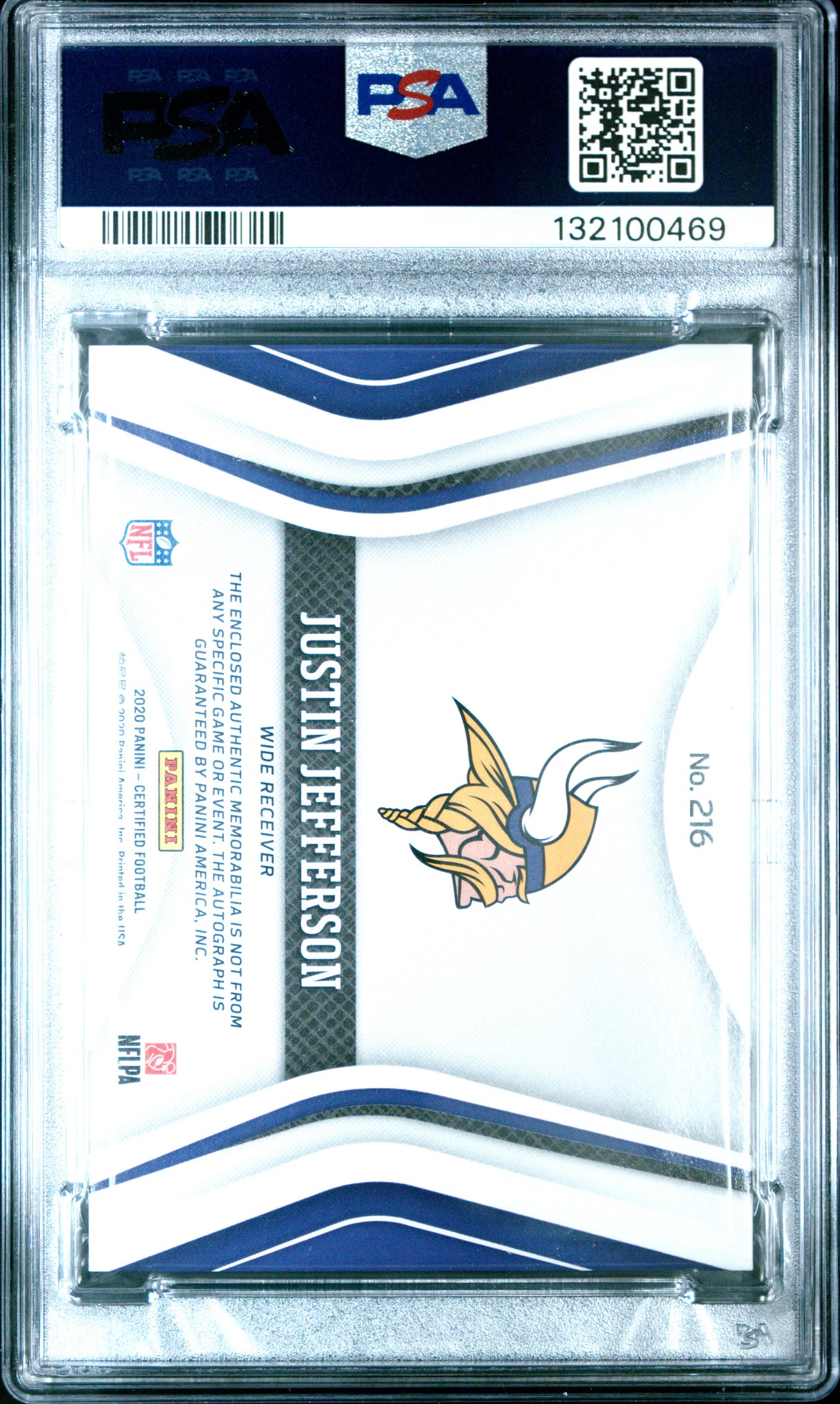 Justin Jefferson 2020 Panini Certified Signature Jersey #216 /249 PSA 7