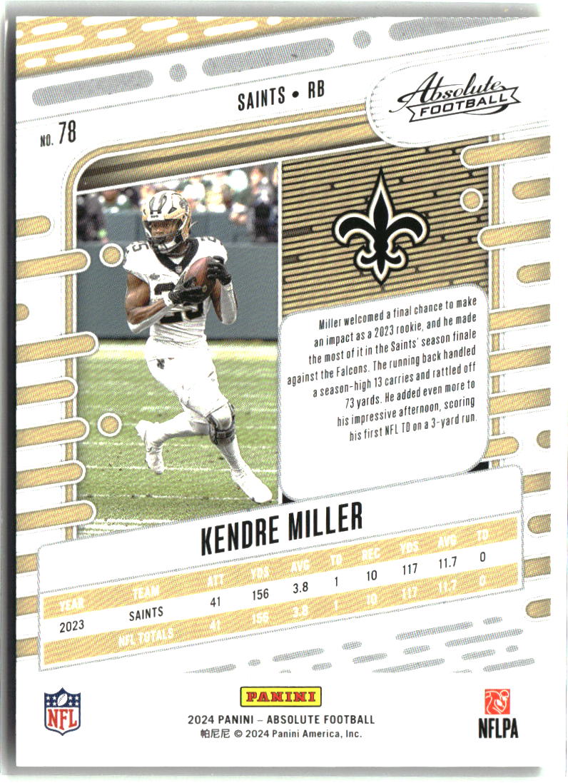 Kendre Miller 2024 Panini Absolute Green Waves #78 #/50