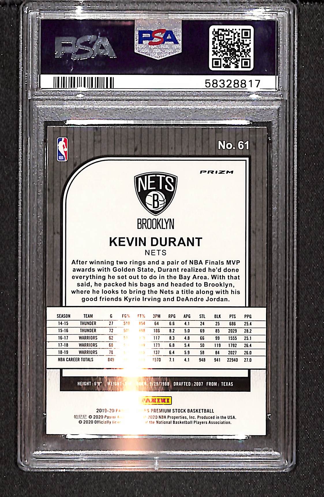 Kevin Durant 2019 Panini Hoops Premium Stock Green Prizm #61 PSA 9