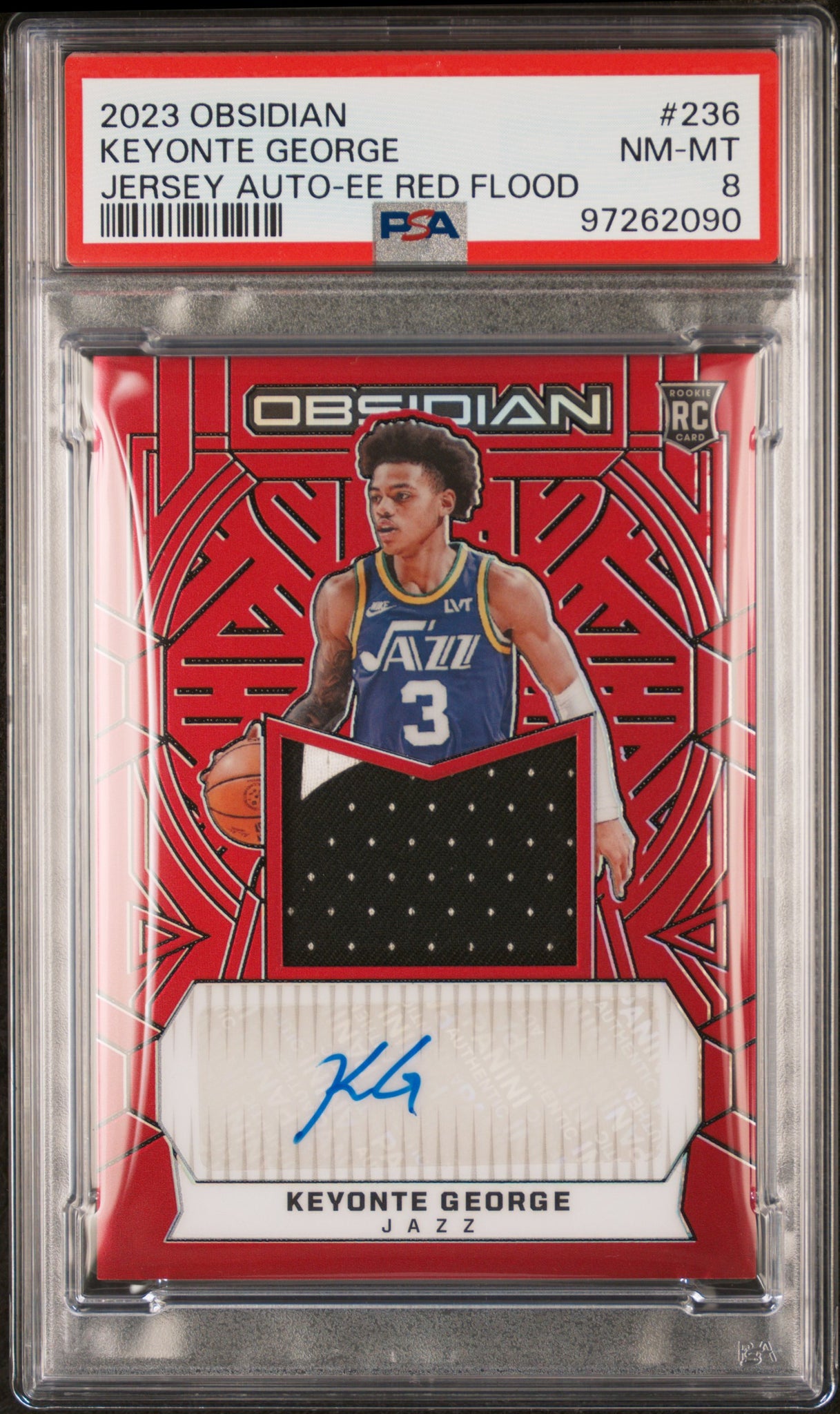 Keyonte George 2023-24 Obsidian Rookie Jersey Ink Red Flood #RJI-KEY PSA 8