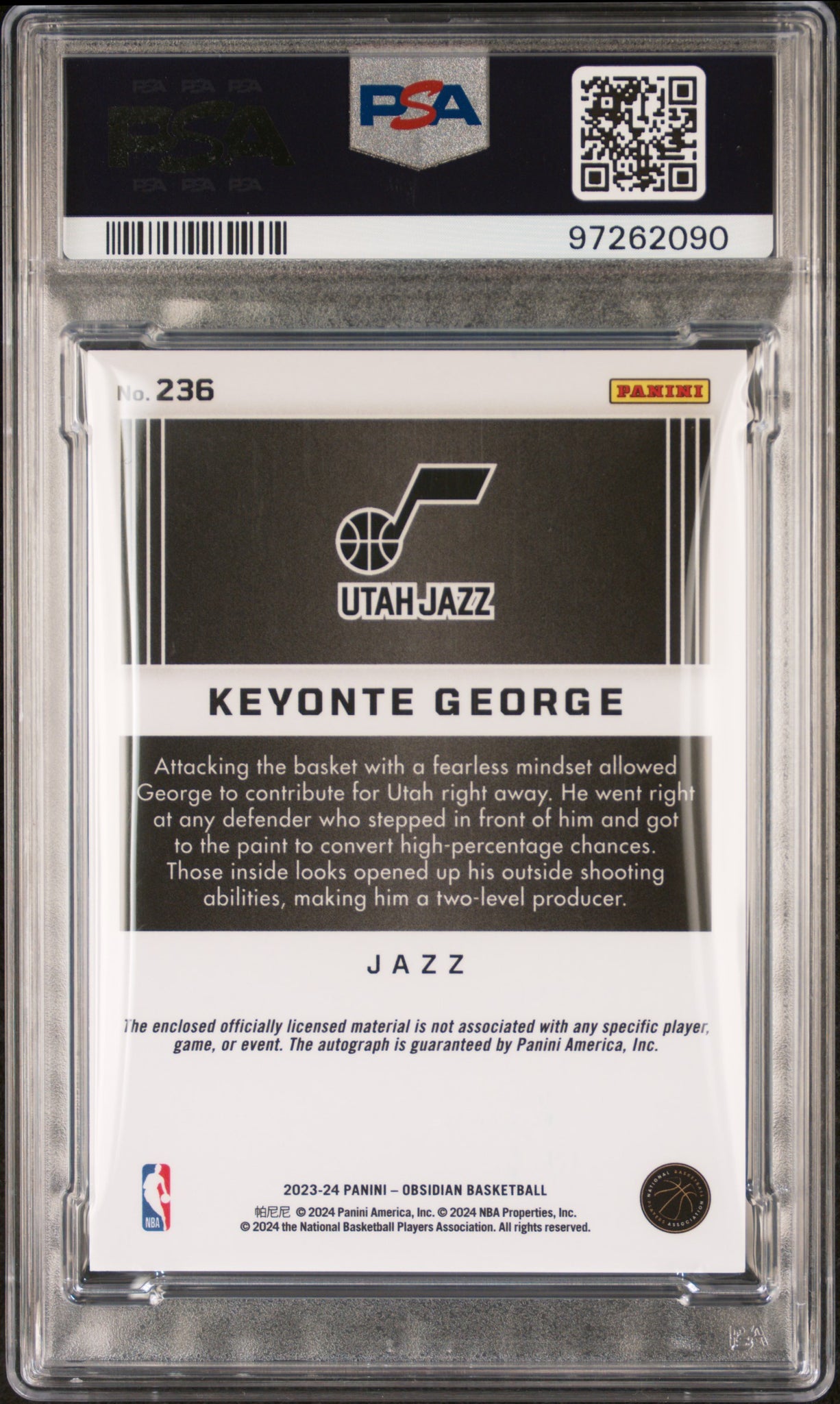 Keyonte George 2023 Panini Obsidian Jersey Auto Red Flood #236 PSA 8