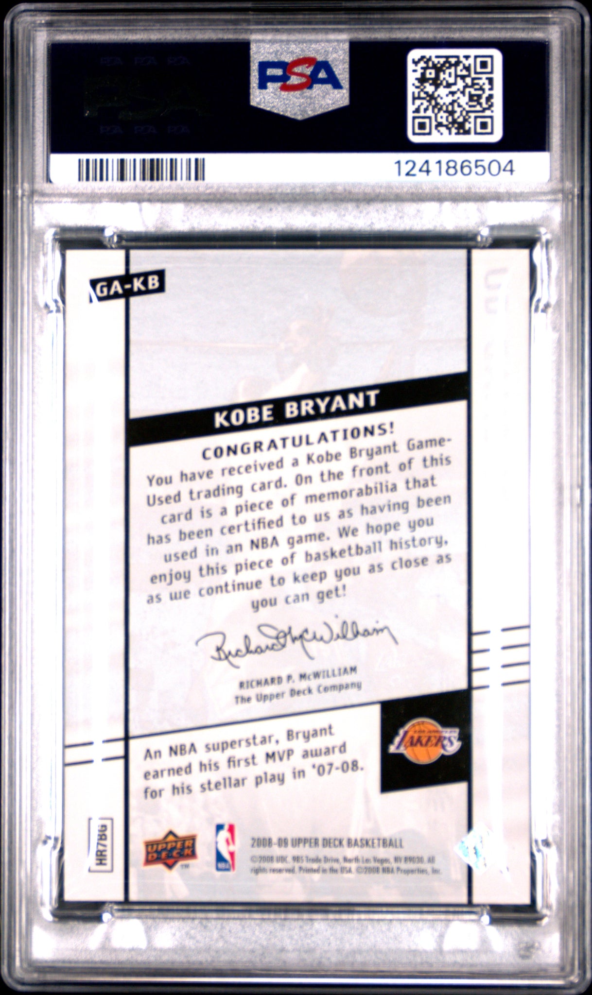 Kobe Bryant 2008 Upper Deck Game Jersey #GA-KB PSA 8