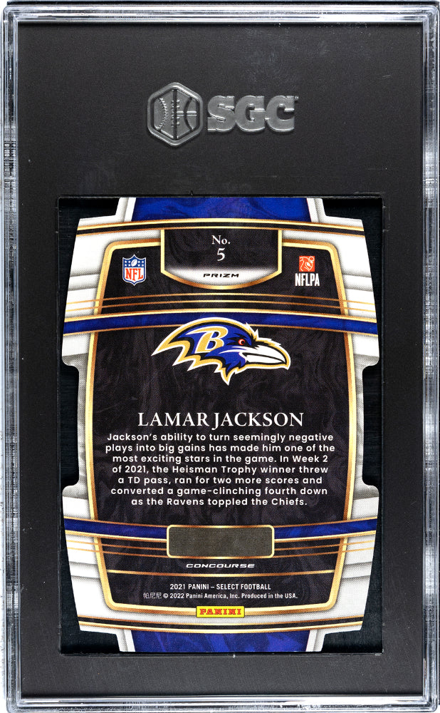 Lamar Jackson 2021 Panini Select Silver Die Cut Prizm #5 SGC 10