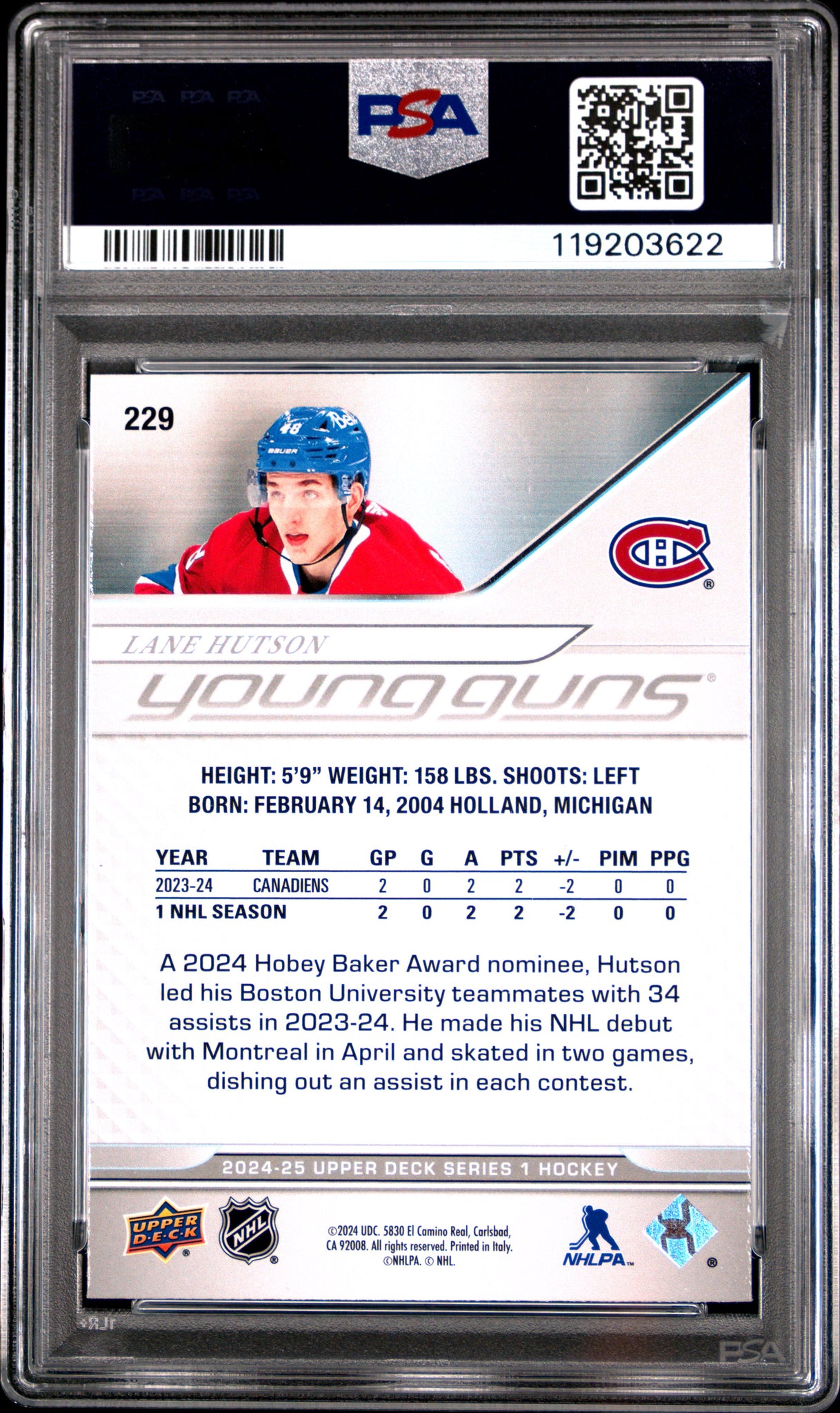 Lane Hutson 2024 Upper Deck #229 PSA 10