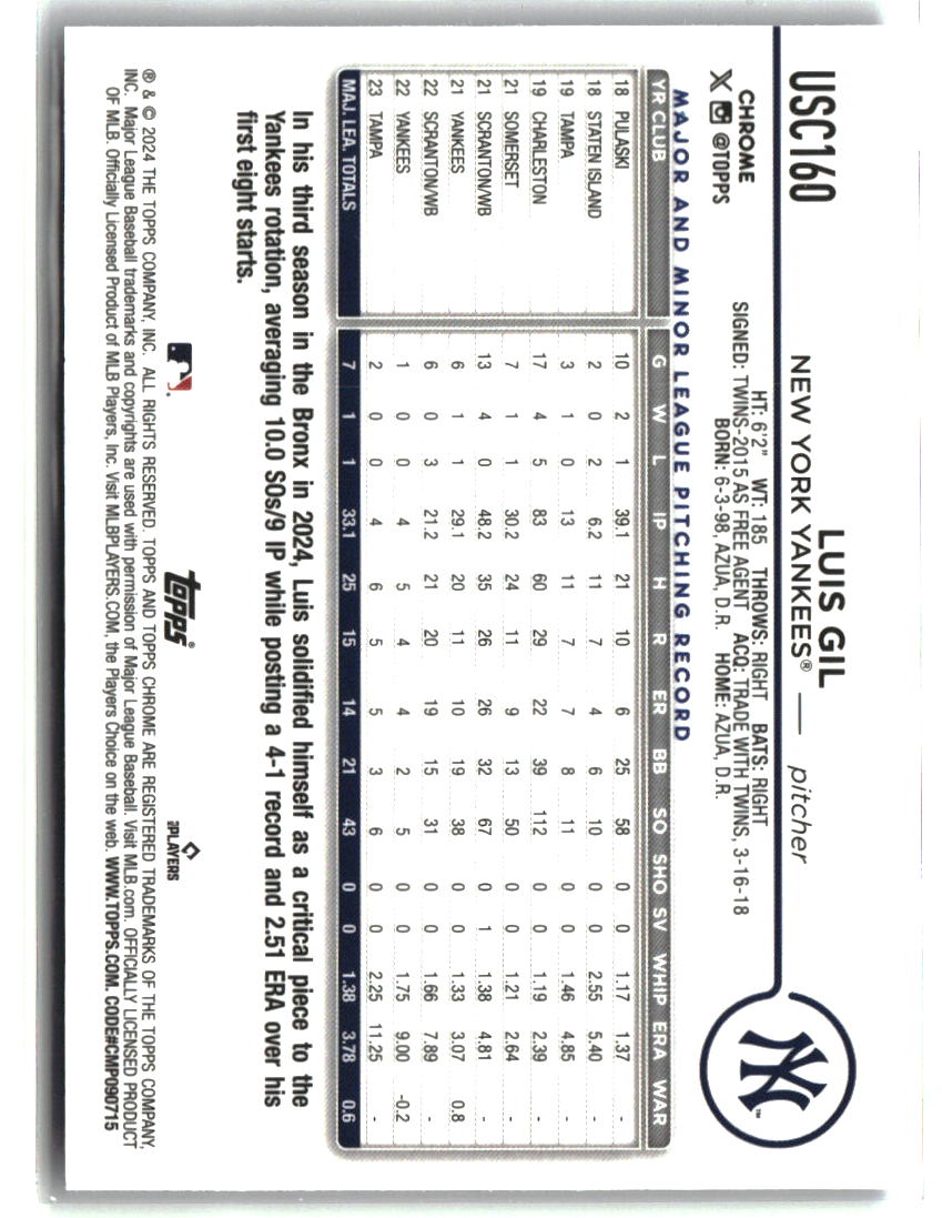 Luis Gil 2024 Topps Chrome Update Purple Refractors #USC160 #/250