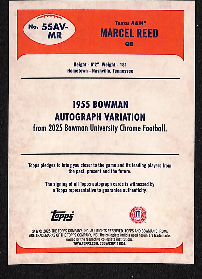 Marcel Reed 2025 Bowman University Chrome 1955 Autograph Variation #55AV-MR